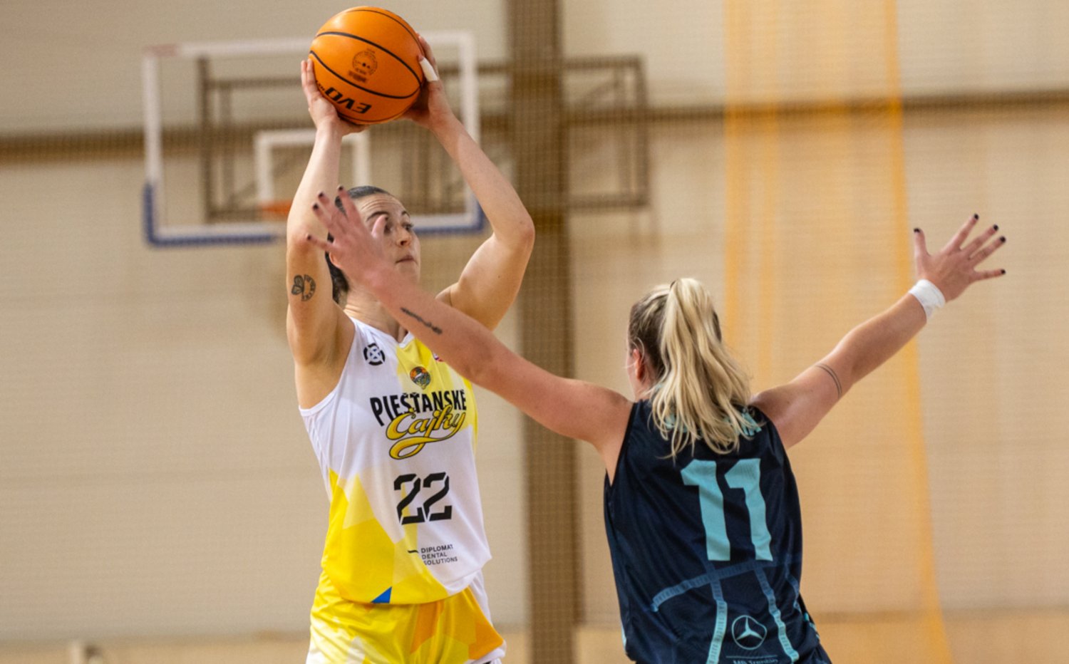 Basketbalistky BK AS Trenčín prehrali v zápase 3. kola základnej časti Tipos Extraligy žien na palubovke majstrovských Piešťanských Čajok 31:114 ...