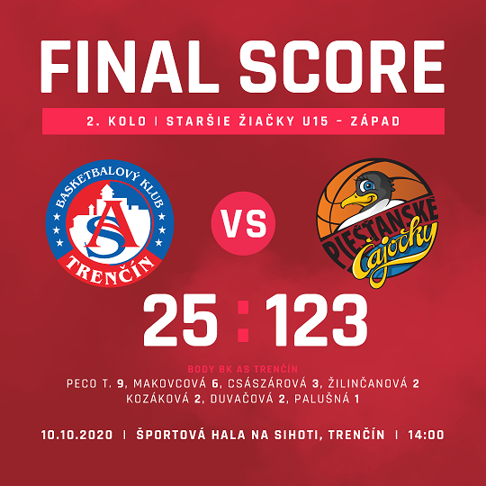 BK AS Trenčín - Piešťanské Čajočky 25:123