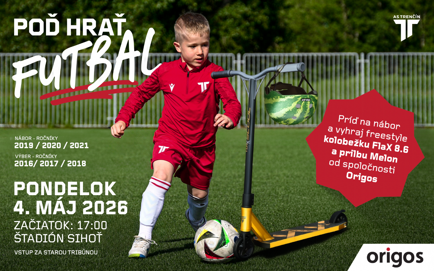 Futbalový klub AS Trenčín pripravuje na pondelok 4. mája ďalší nábor do svojich mládežníckych prípraviek. Podujatie je určené pre najmladšie futbalové talenty a uskutoční sa na hlavnom ihrisku Štadión Sihoť so začiatkom o 17.00 hod.