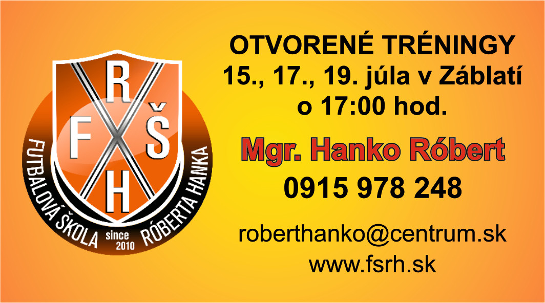 Chlapci vo Futbalovej škole Róberta Hanka budú mať na jar a v lete k dispozícii ihriská v Záblatí a v jesenných a zimných mesiacoch tréningové plochy na trenčianskom ostrove v priestoroch This is my sen Academy.