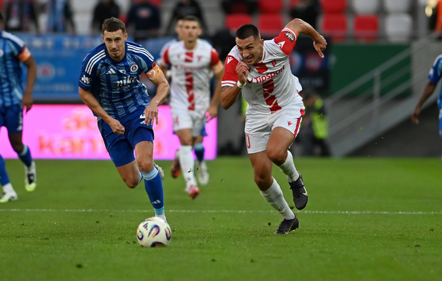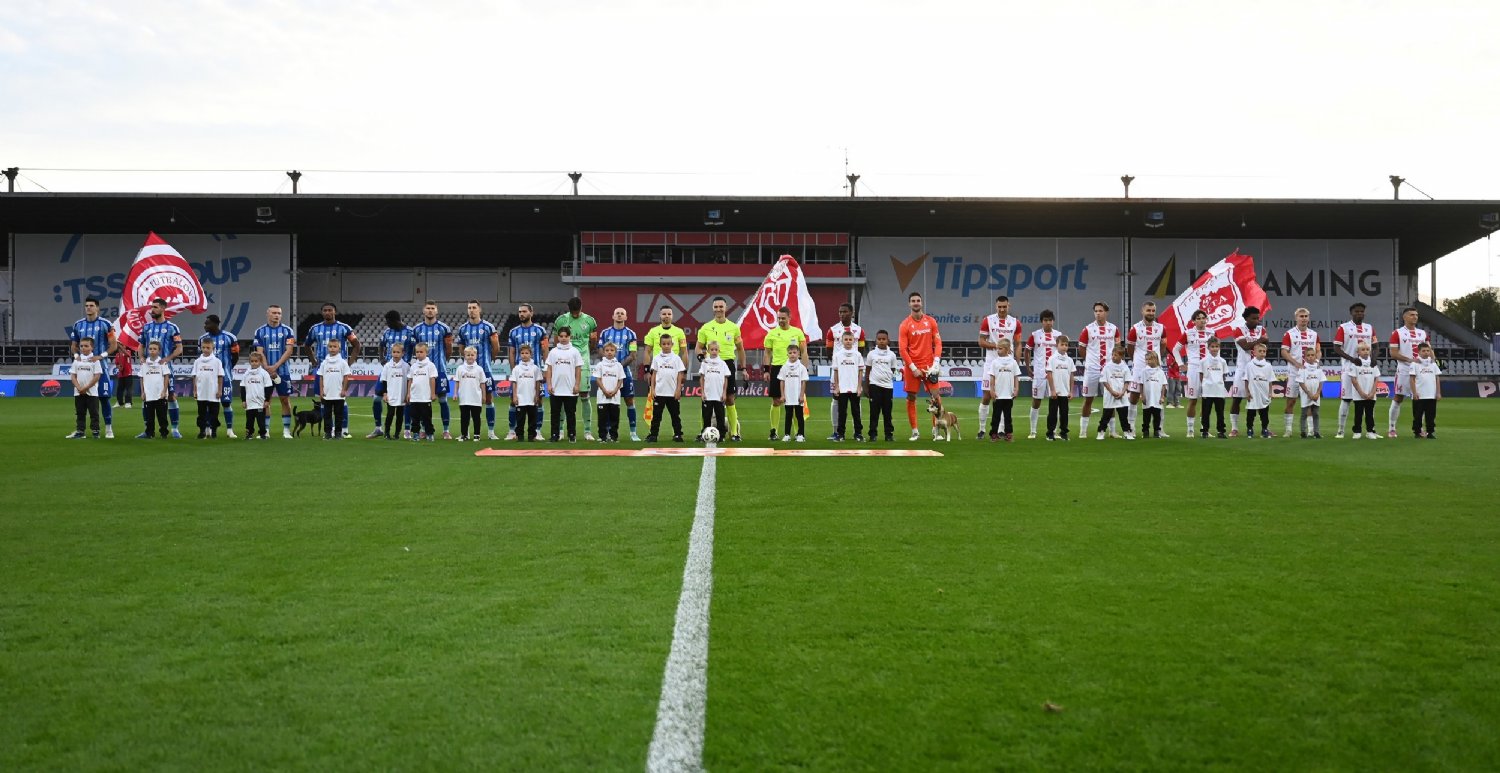 V úvode zápasu sme sa dostali do šance po štandardnej situácii. Do vedenia sa však už v 4. min dostal Slovan, keď hneď prvú strelu na Katičovu bránu premenil Marcelli – 0:1. Náš celok mal viac loptu na kopačkách, hostia však trpezlivo čakali na naše chyby a podnikali nebezpečné protiútoky. V 15. min vysunul Fiala peknou prihrávkou Yakubuho, no ten len preveril Takáča. Stále sme sa tlačili pred jeho bránu, no aYakubu, ani Fiala nepretavili svoje šance na gól. V 19. min sa do prečíslenia dostal Sabljić, no z veľkého tlaku sme opäť nič nevyťažili. O tri minúty neskôr mali „belasí“ k dispozícii rohový kop, ktorý odvrátil práve Sabljić. V 31. min sa pekne preklučkoval pred bránu nováčik Adyrbekov, no hosťujúci brankár si s jeho pokusom bez problémov poradil. O chvíľu nato sme zahrávali štandardnú situáciu spoza šestnástky, no opäť bez gólového efektu. Aj keď sme si vytvorili viac šancí ako úradujúci majster, v 34. min sme ich nedokázali využiť. V 40. min mal na vyrovnanie veľkú príležitosť Križan, jeho hlavička po rohovom kope však skončila len tesne vedľa brány. V závere prvého polčasu prišla chyba kapitána Bessilého, ktorú hostia potrestali a zvýšili svoj náskok - 0:2. Do druhého dejstva sme vstupovali s dvojgólovým mankom, no hneď od úvodu sme sa tlačili pred Takáčovu bránu. V 51. min zahrával Slovan štandardnú situáciu, ktorú sme dokázali zneškodniť. Postupne však začali mať hostia viac z hry a čoraz častejšie ohrozovali Katiča. V 62. min prešprintoval obranu Sabljić, no jeho strela sa odrazila len od žrde. O desať minút neskôr zahrávali hostia pokutový kop, ktorý Katič famózne zneškodnil. Z následnej dorážky Slovanisti bránu prestrelili. V 75. min mieril Pavek k vzdialenejšej žrdi, no opäť len tesne vedľa. O dve minúty neskôr sme sa dostali k ďalšiemu zakončeniu, no lopta skončila opäť mimo priestoru brány. V 89. min sme mali aj my k dispozícii pokutový kop, ktorý Molik s prehľadom premenil – 1:2. V nadstavenom čase sme sa ešte mohli dočkať vyrovnania, no naše pokusy tesne minuli bránu. Napokon sa nám už skóre zrovnať nepodarilo.