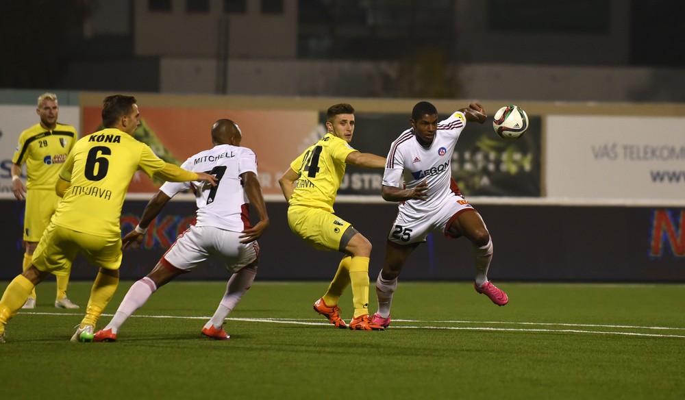Do vedenia sme sa dostali aj s prispením súpera. Banovič sa pri rozohrávke pošmykol. K lopte sa dostal Schet a sám pred Hruškom nezaváhal – 1:0. Z vedenia sme sa však netešili dlho. Už o minútu loptu usmernil do vlastnej bránky Rundič – 1:1. Na góly hojnú úvodnú pätnásťminútovku zakončil rýchly výpad Scheta po pravom krídle. Prihrávku pred bránku na Van Kessela si Beňo zrazil do vlastnej siete – 2:1. O dve minúty predviedol individuálne majstrovstvo Van Kessel. Zaplietol hlavu obrane, no tá dokázala jeho pokus z uhla na poslednú chvíľu odkopnúť na rohový kop. V 27. Min sa z ihriska po zákroku zozadu porúčal hosťujúci Banovič. V 35. min mohol pridať tretí gól majstra Van Kessel, Hruška ale bol na svojom mieste. Loptu vyboxoval do bezpečia. Myjavčania sa prevažne bránili a čakali na svoju šancu, no tá do polčasovej prestávky neprišla.
