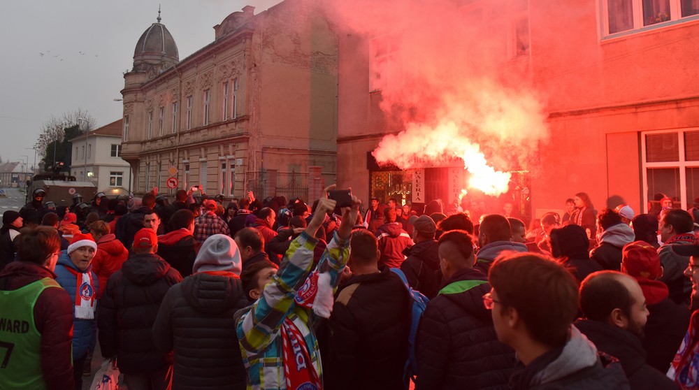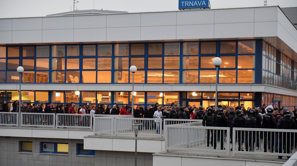 Dvadsaťbodový rozdiel medzi tímami nebolo v úvode cítiť. Po chybe obrany už v druhej minúte vnikol do pokutového územia Schranz a jeho pokus musel Šemrinec vyraziť na roh. Našich hráčov podporoval plný fanúšikovský sektor, ale rozbiehali sa pomalšie. Kombinačne síce mali navrch, ale v koncovke sa najlepšej ofenzíve súťaže nedarilo. Trnava mala druhú šancu v zápase, keď aktívny Schranz obral o loptu Rabiua, no strelou zvnútra šestnástky opäť nevyzrel na Šemrinca. Následne sa zaskvel aj pri krížnej delovke Majtána. Jeho náprotivok Kamenár musel prvýkrát zasahovať až v 32. min, keď zneškodnil nebezpečnú strelu Bera. V 42. min trafila lopta v šestnástke ruku Šuleka a hlavný rozhodca Kružliak ukázal na biely bod. Nariadený pokutový kop premenil Harba - 0:1.